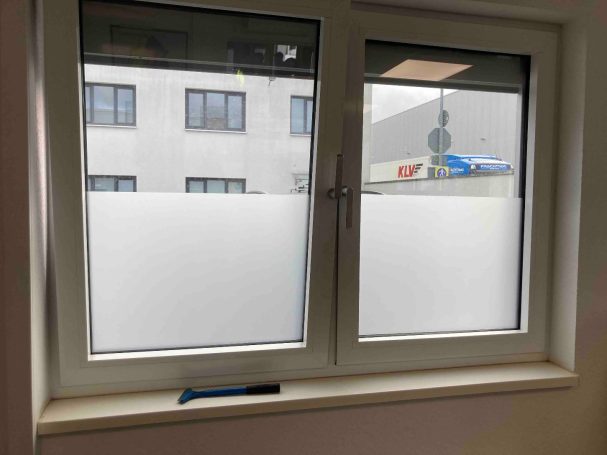 Entdecken Sie die Vorteile von hochwertiger, lichtdurchlässiger Milchglas-Folie für die vollflächige oder partielle Beschichtung von Glasflächen. Diese Lösung bietet nicht nur effektiven Durchgangsschutz, sondern ermöglicht auch eine dezente Beschriftung. Gerne sende ich Ihnen ein Muster zu.