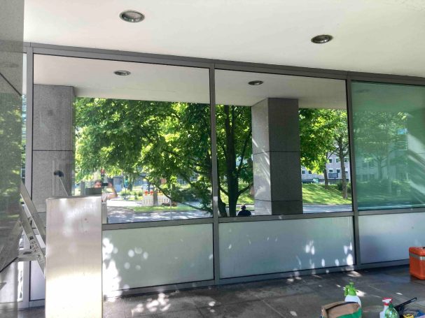 Beschichtung von Glasflächen mittels hochwertiger Sonnen- bzw. Hitzeschutzfolien. Ziel ist es, überhitzte Räume angenehmer zu machen und als Blendschutz zu dienen. Vielfältige Tönungsvarianten ermöglichen individuelle Designs und Funktionen. Die äussere Verspiegelung reduziert Einblicke von außen ins Innenraumgeschehen. Gerne lasse ich Ihnen ein Muster zukommen, damit Sie Farbe, Transparenz und Reflexionsgrad prüfen können.